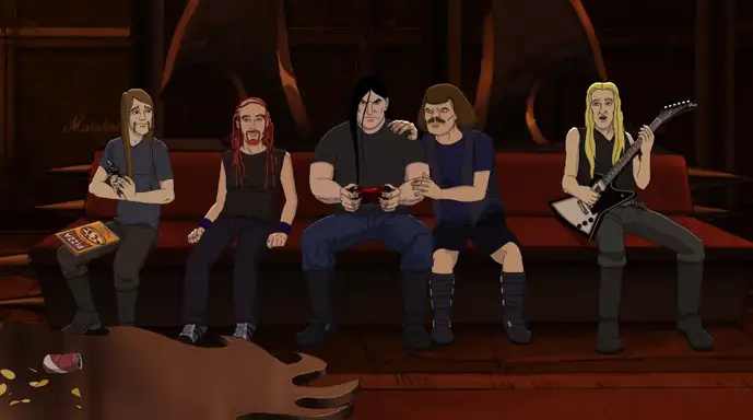 Nathan Explosion, William Murderface, Skwisgaar Skwigelf, Toki Wartooth, Pickles the Drummer