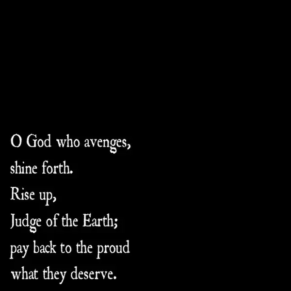O God Who Avenges, Shine Forth. Rise Up, Judge of the Earth; Pay Back to the Proud What They Deserve.